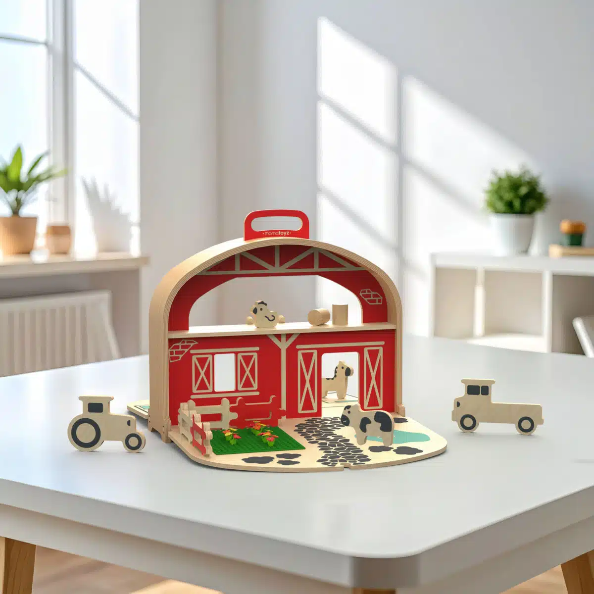CarryFarm is een draagbare houten speelgoedboerderij met dieren en een hekken, geïnspireerd door de natuurlijke behoefte van kinderen om hun speelgoedboerderij mee te nemen en overal te spelen. Ontworpen met zowel creativiteit als bruikbaarheid in gedachten, is het het perfecte reisvriendelijke speelgoed voor kleine autoliefhebbers.