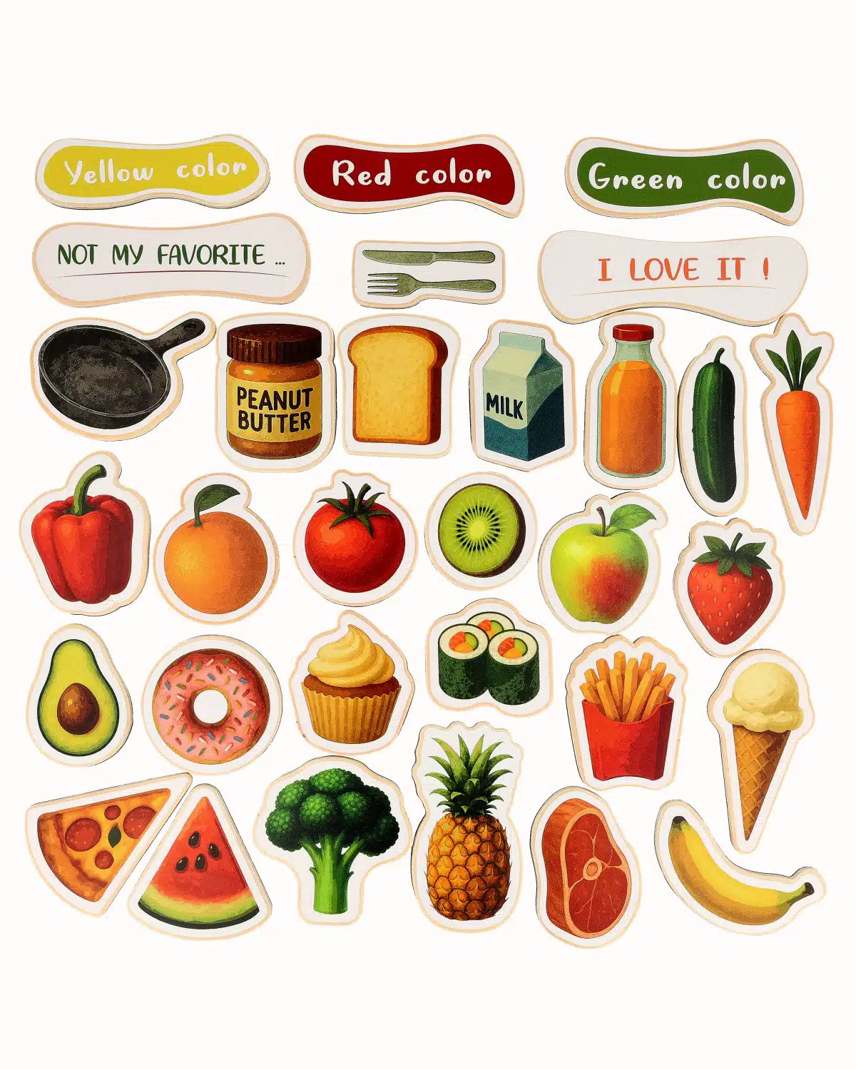 โ Emotioneel leren โ Helpt kinderen hun voorkeuren en afkeuren uit te drukken met speelse โIk vind het lekker!โ- of โNiet mijn favorietโ-kaartjes.